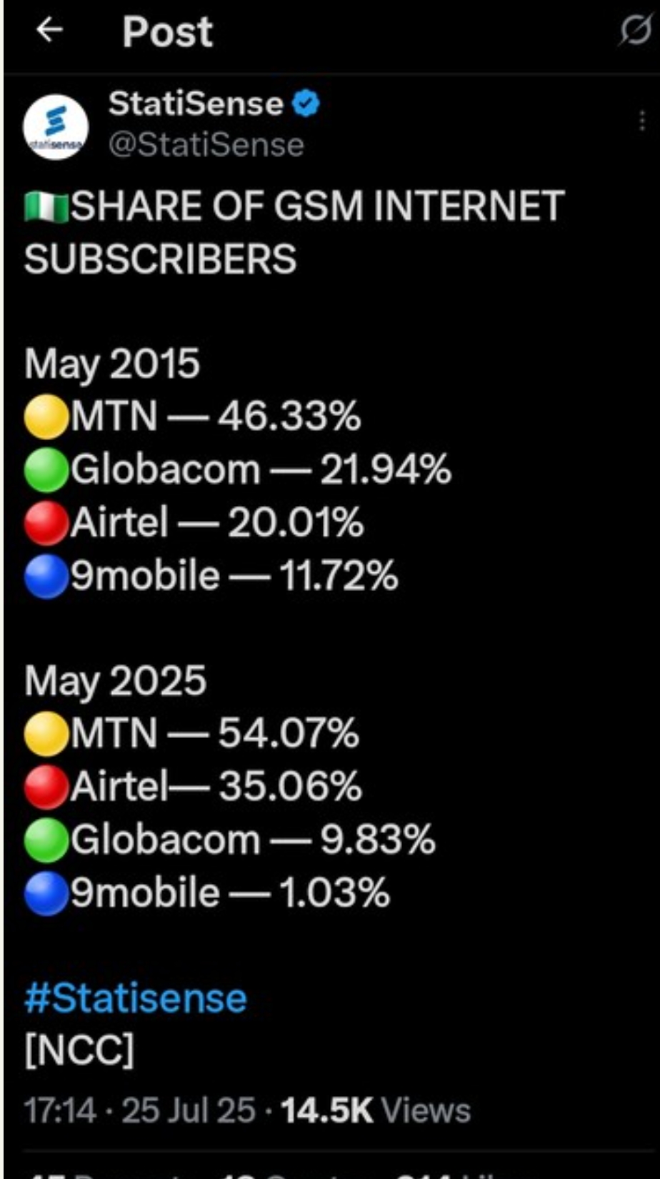 SHARE OF GSM INTERNET SUBSCRIBERS