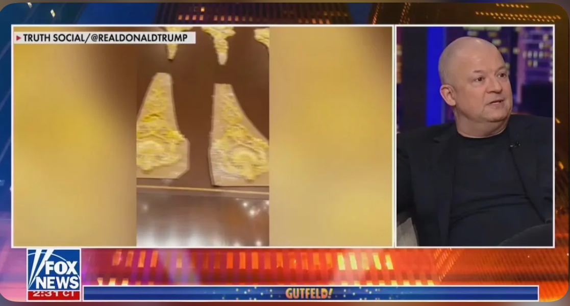 On Fox News’ Gutfeld!, guest host Tom Shilluepulled up a Trump post to Truth Social where he showed off the gold he’s added to the White House.