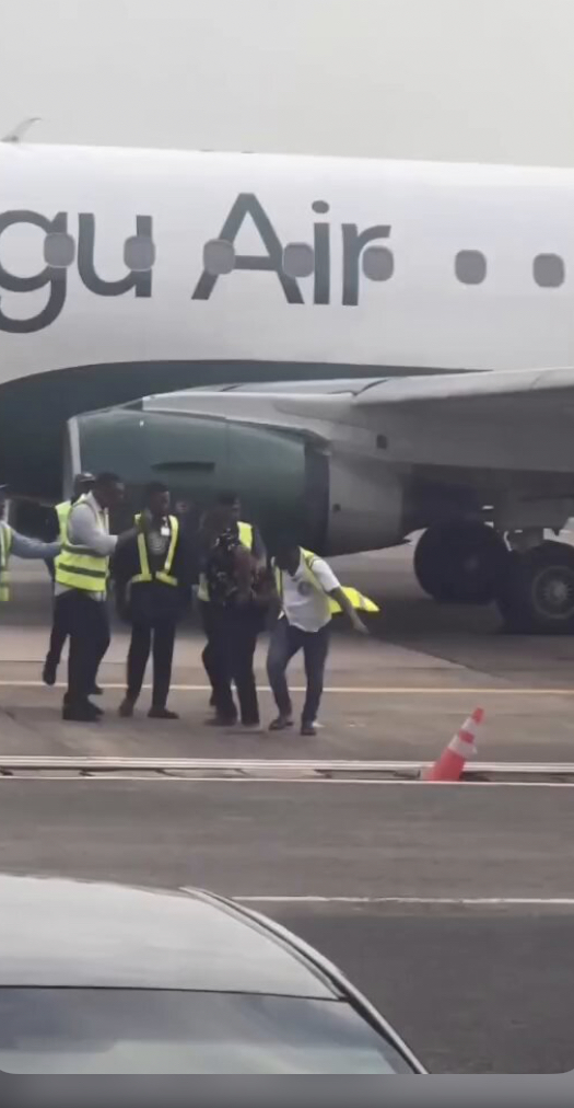 Moment passenger onboard Enugu Air was captured on tape being whisked away by ground staff at the airport??