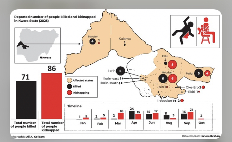 According to the latest information obtained from residents by Weekend Trust, attacks in Edu and Patigi local government areas in Kwara north have occurred in no fewer than 52 communities, resulting in the death of 23 persons and over 50 kidnapped.
